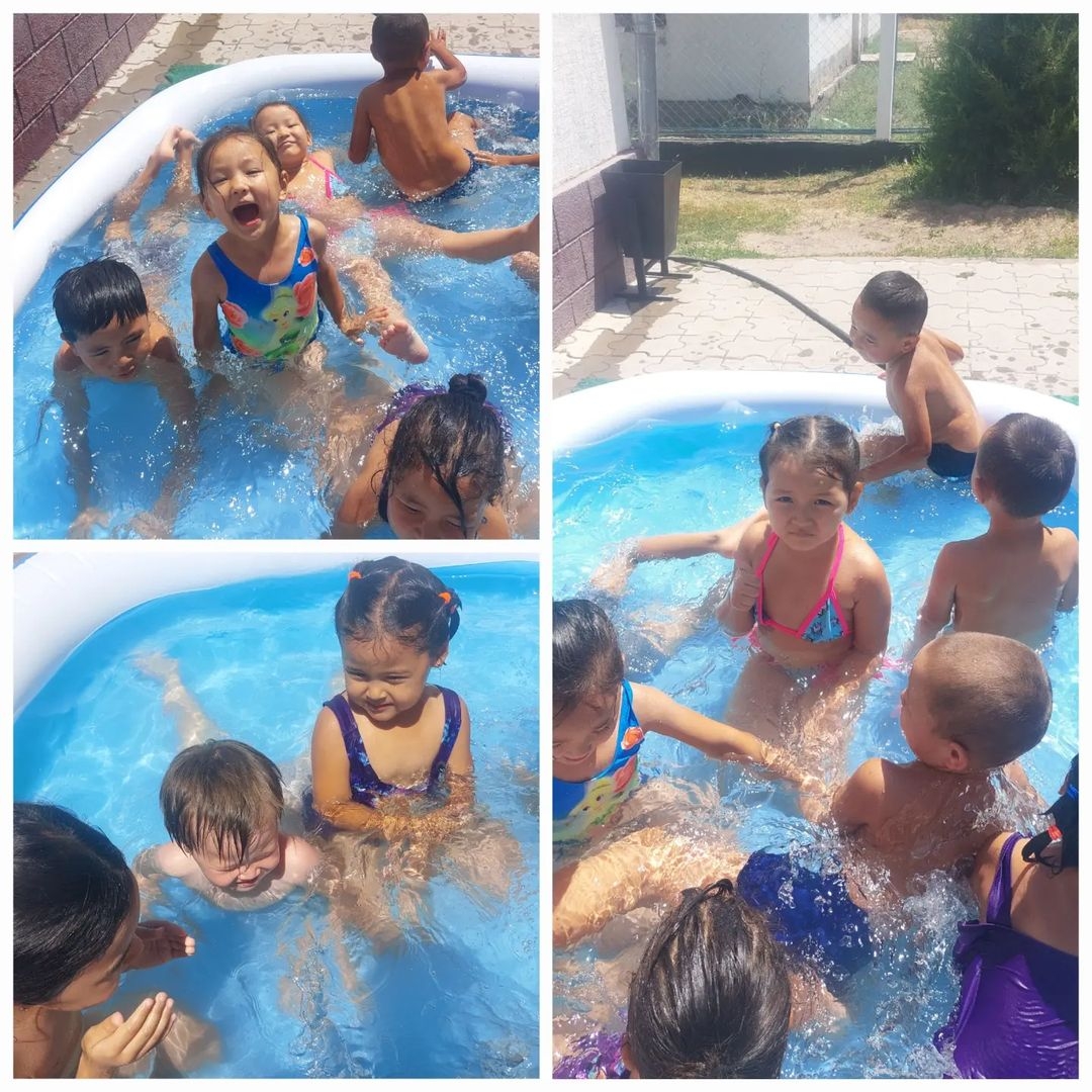 "Балапан" бөбекжай-бақшасында жазғы сауықтыру кезеңінде бүлдіршіндердің денсаулық дағдысын қалыптастыру,шынықтыру шараларымен денсаулықтарын нығайту мақсатында бессейінде балалар суда еркін шомылып, көтеріңкі көңіл күйде болды