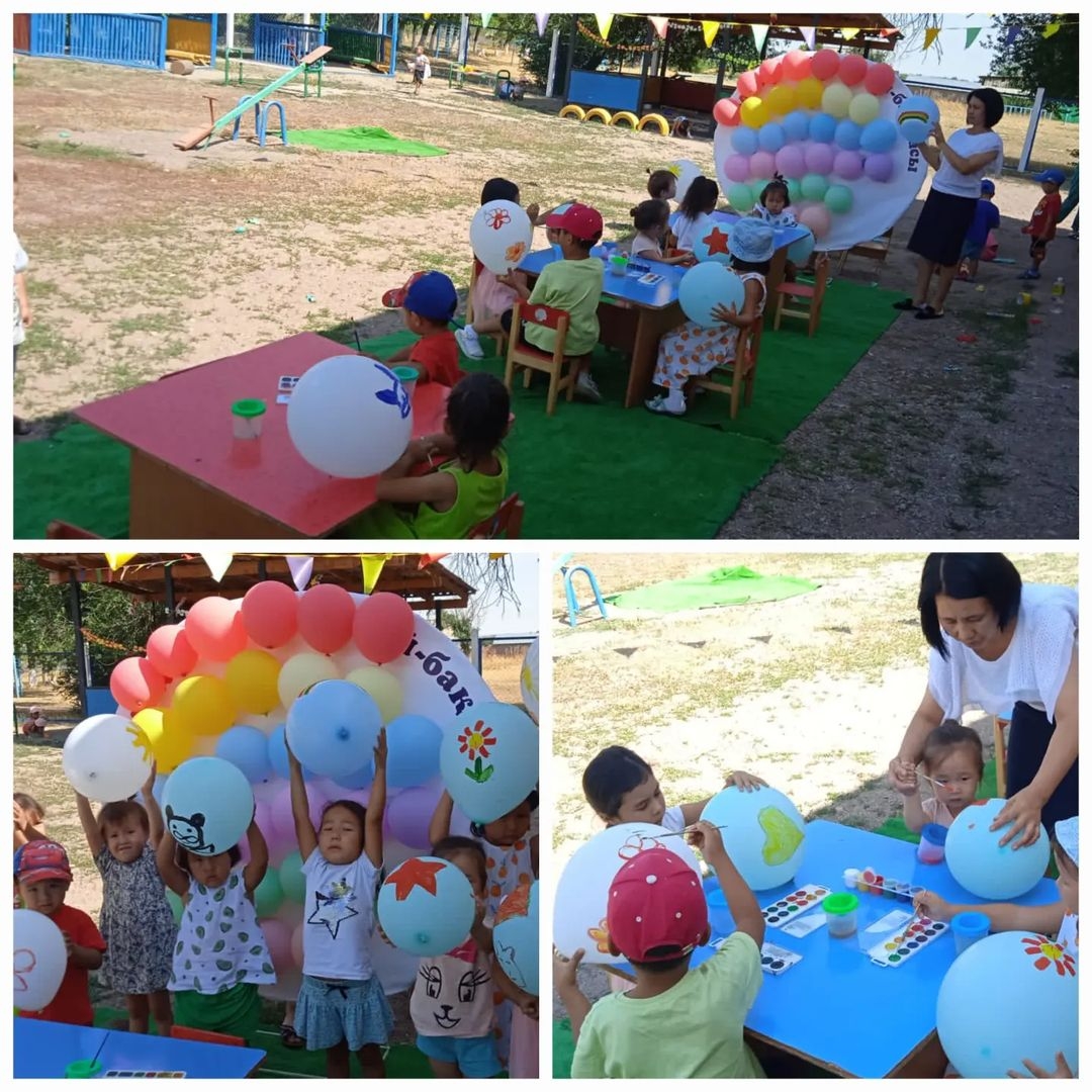 "Балапан" бөбекжай- бақшасында жаздық сауықтыру кезеңіне байланысты "Түрлі-түсті шарлар" атты тақырыпта балалар түстерді ажыратып, бояу арқылы шараларға сурет салып, түрлі -түсті шаралармен кемпірқосақ бейнесін құрастырып шықты