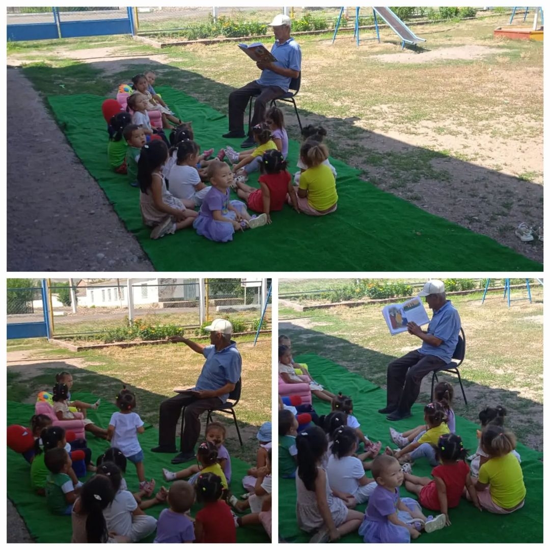 "Балапан"бөбекжай-бақшасында жазғы жоспарға сай "Атамның әңгімесі" тақырыбындағы іс-шара таза ауада атамыздың ертегісін тыңдап, қызықты әңгіме жүргізді