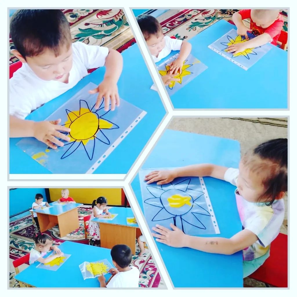 "Балапан" бөбекжай-бақшасының жоспарына сай "Күлімдейді күн маған" атты тақырыпта ұйымдастырылған іс-әрекетте бүлдіршіндер таза ауада "Ботақан" тобы қағаз бетіне желіммен әр түрлі кескіндер жапсыруды үйренді. "Қарлығаш", "Бүлдіршін" топтары бояу арқылы күннің бейнесінің суретін салды. Музыкант-хореогроф Өсер Қорлан балаларға сергіту сәтін өткізді.