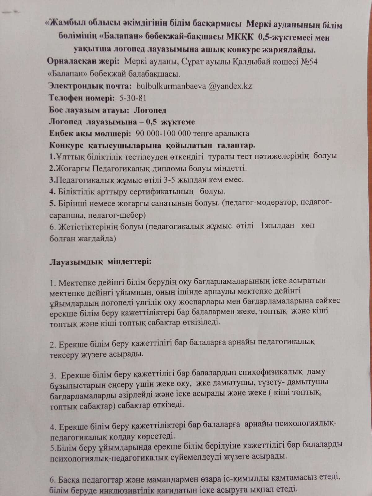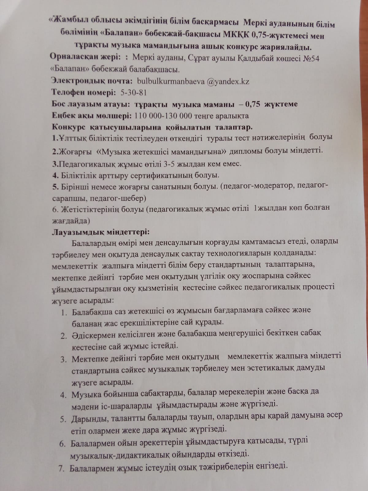 Еңбек өтілімі- 7 жыл